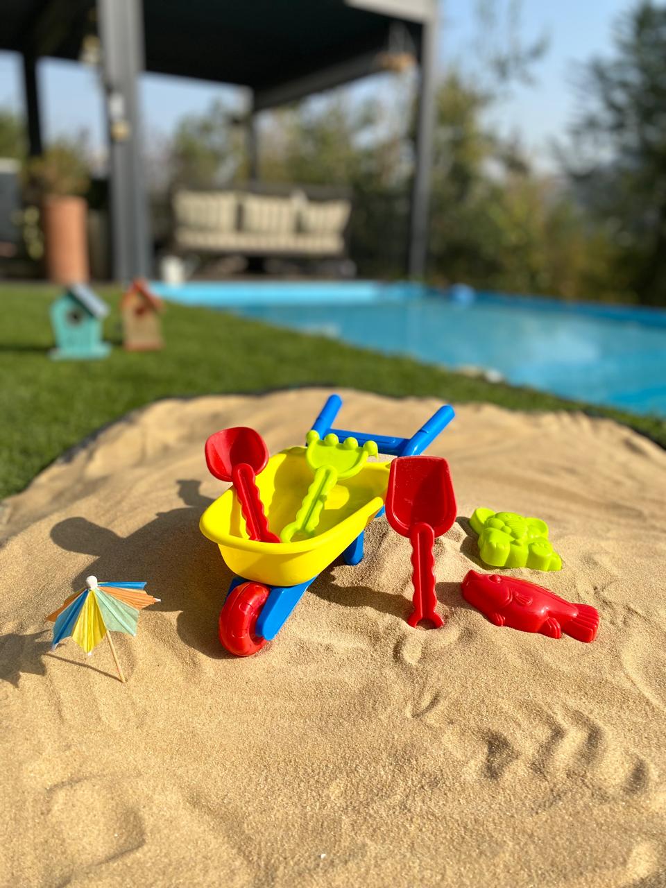 Además, viene en un bolso de red liviano y fácil de llevar, ideal para la playa, el jardín o el arenero.